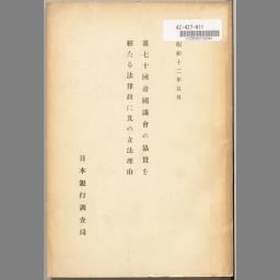 第七十回帝國議會の協賛を經たる法律竝に其の立法理由