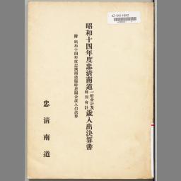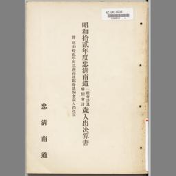 忠清北道歳入出決算・忠清北道臨時恩賜金歳入出決算・忠清北道地方費兒童奬學資金特別會計歳入出决算・忠清北道罹災救助基金特別會計歳入出决算・忠清北道朝鮮簡易生命保險積立金預入ニ依ル預金部資金轉貸資金特別會計歳入出决算