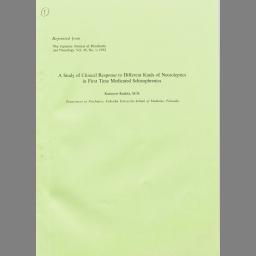 精神分裂病新鮮例における薬物種類別反応性の研究