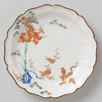 Lobed dish with dragon, tiger, bamboo and prunus