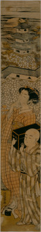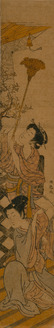 The courtesan Ayame of the Matsuba-ya and an attendant playing with a puppet