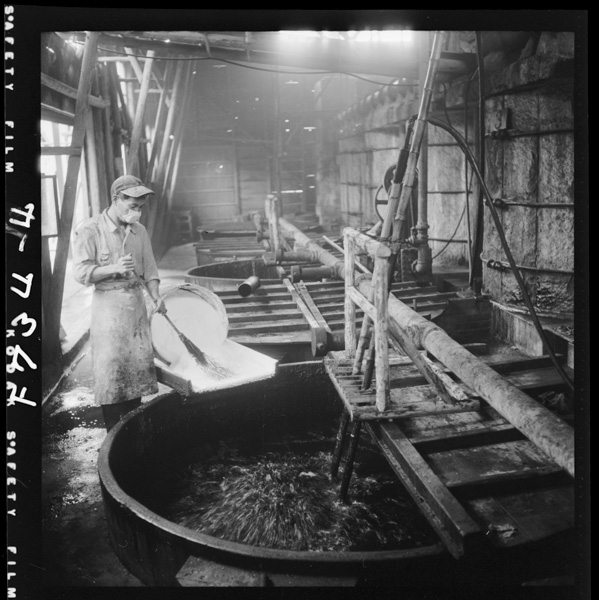 諸味 流水を箱の底から入れ塩をとかしてゆく