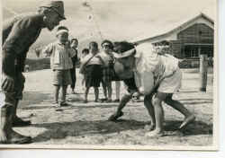 相撲をとって遊ぶ子どもたち