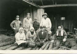 材木店の作業場で記念撮影