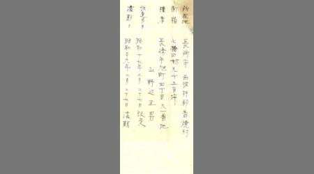(御前様、信次郎様着邸ニ付留)