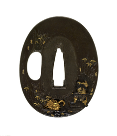 Tsuba with Watanabe no Tsuna Pursuing the Earth Spider into her Cave