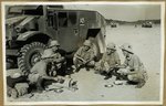 Artillery calibrating the guns; men enjoying a cup of morning tea in front of one of the quads - Photograph ...