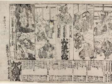 Procession of Children on the Occasion of the Opening of the Tatemono Shrine at Ryogoku (Chinze Hachirō Tametomo Daimyōjin Ryögoku ni ___ (?) on kaichō kodomo __gyaku (?) no zu)