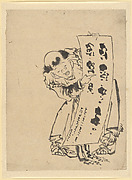 Wu Daozi Painting Zhong Kui (the Demon Queller) in Red Ink/ Wu Daozi (Go), from the series Four Companions of Writing Chamber (Bunbō shiyū), with poems by Kurokao(?) Ryūjuen Chiyonari (from Mino), Funazono Suiki(?), Ryūjuen Tōki, and Ryū no ya (from Biyō)