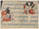 Haruka and Haruji of the Kadotamaya as Soga no Goro and Asaina Saburo in the armor-pulling scene, from the series "Comic Performances by the Entertainers of the Pleasure Quarters at the Niwaka Festival (Seiro geiko niwaka kyogen zukushi)"