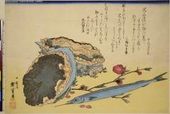 Abalone (Awabi), Halfbeak (Sayori) and Peach (Momo), from the series A Shoal of Fishes (Uozukushi)