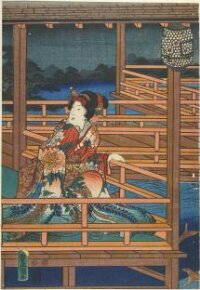 Tora-gozen Seated on Balcony Looking down on Jūrō Sukenari, series Soga Brothers' Revenge (曽我物語図絵)