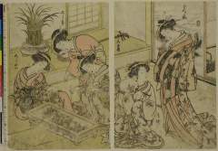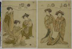 Courtesans Azumaya and Kokonoe of the Matsuganeya Brothel in the Yoshiwara Accompanied by their Shinzō and Kamuro (吉原傾城)