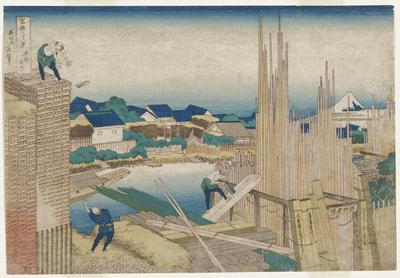 Tatekawa River Lumberyard at Honjo (Honjo Tatekawa), from the series "Thirty-six Views of Mount Fuji (Fugaku sanjurokkei)"