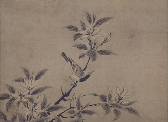 梔子に小禽図