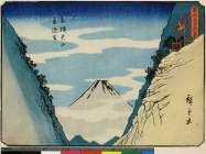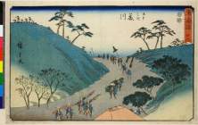 Utsu Mauntain at Okabe (Okabe Utsu no Yama no Zu), series The Fifty-three Stations of the Tōkaidō (東海道五拾三次(狂歌入東海道))