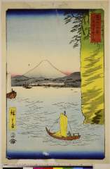Distant View of Mt. Ōyama from the Ferry on the Bannyū River near Hiratsuka, series Pictures of Famous Places on the Fifty Three Stations (五十三次名所図会(竪絵東海道))