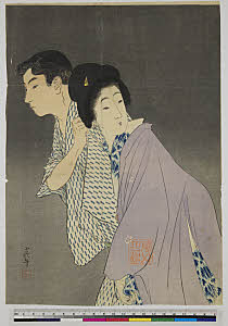 Love Story of Osome and Hisamatsu (Somemoyō Imose no Kadomatsu), series New and Old Joruri (古今浄瑠璃盡)