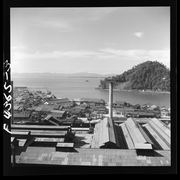 1 は安来町と中海.手前に並んでみえる屋根が製鋼所