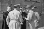 Father Snedden and Father Flanagan chat with Generals Puttick and Freyberg, and Prime Minister Peter Fraser ...