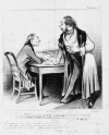 『カリカチュラーナ』:(82)「こう書いてくれ―拝啓、あなたがお送りくださった手紙に対してお答えします。残念ながら『不燃性靴磨きヨーロッパ協会』の株式はすでに加入多数となりました。しかしながら、あなたのご要望は記録し、増資の募集のあかつきには、ただちにお知らせいたします。敬具、とかなんとか・・・ ロベール・マケール 支配人 これを30万枚印刷してフランス中にばらまくんだ」「なんだって?おれたちは1株ももってないし1株の注文もきてないし、1スーも持ってない。おまけにあんたは・・・」「ベルトラン、このでくのぼう、おれの言ったとおりやりゃいいんだ。よく見てろ」