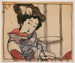 Court Lady Standing before Gate of Shrine, Illustrating the Syllable "Chi"