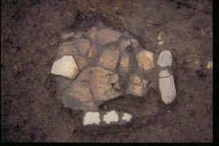 オホーツク墓 20号の上部で検出された石組みの炉址