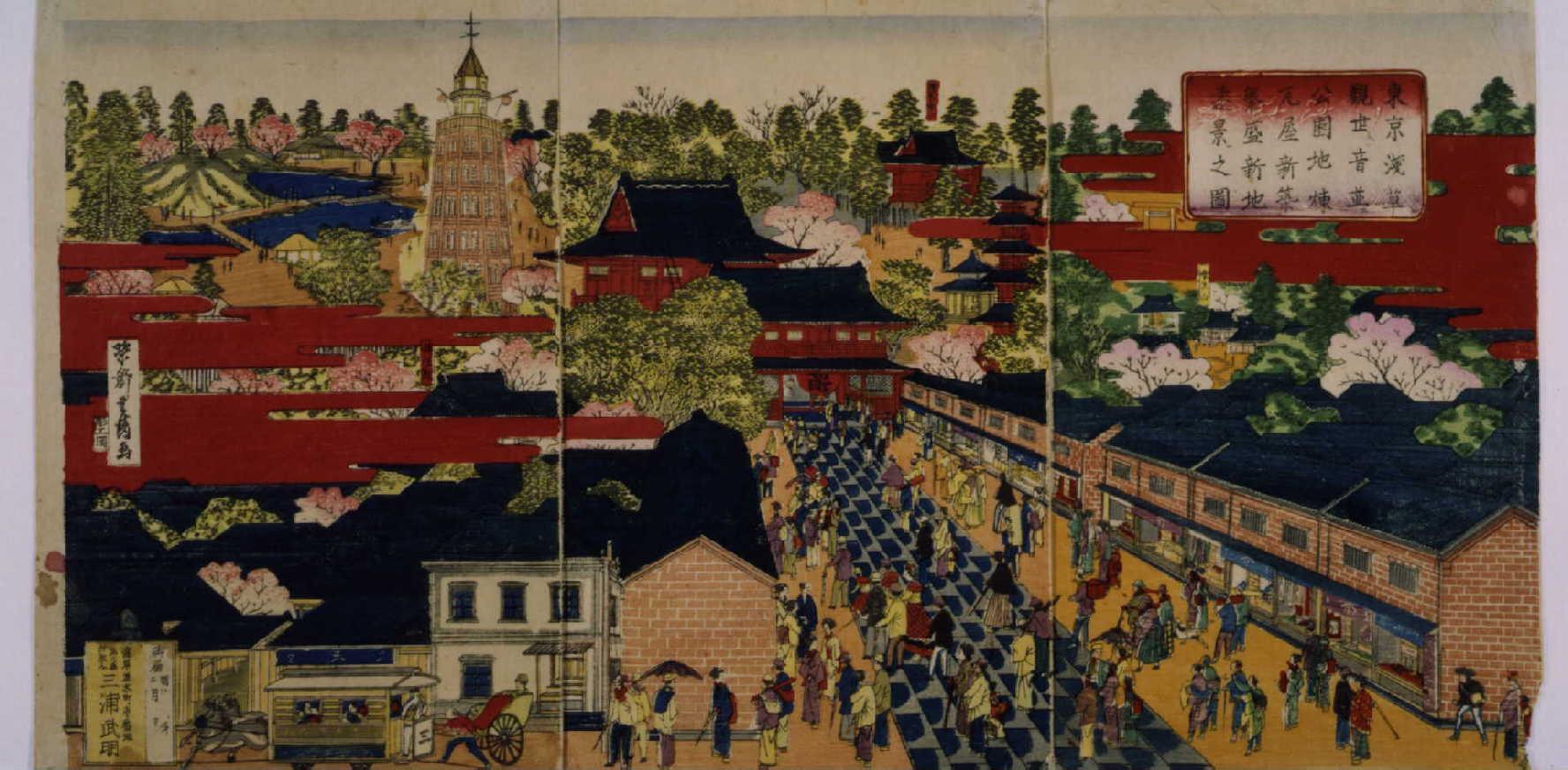 東京浅草観世音並ニ公園地煉瓦屋新築繁盛新地遠景之図