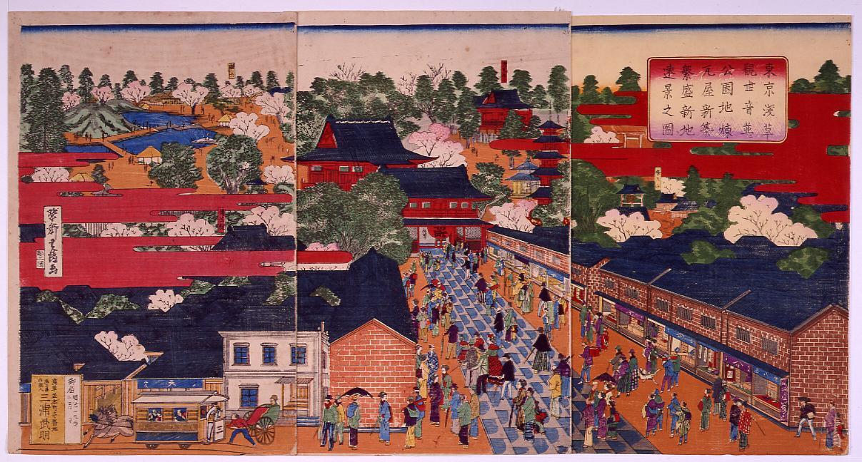 東京浅草觀世音並公園地煉瓦屋新築繁盛新地遠景之図