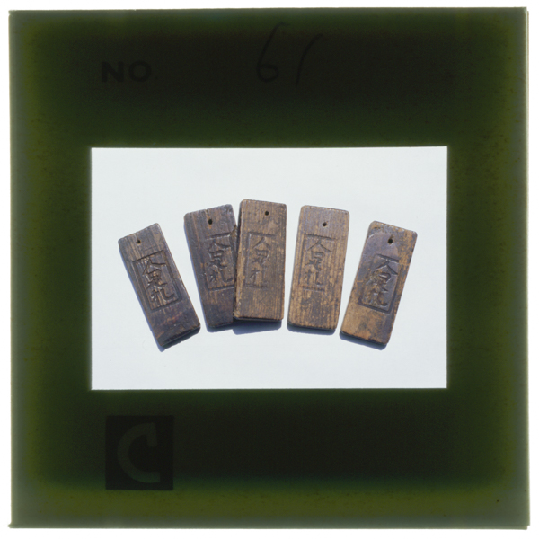 用水修復工事の賃銀の代りとして村人に渡されてきた人足札(五郎兵衛記念館)