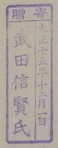寄贈/大正十五年十二月一日 武田信賢氏