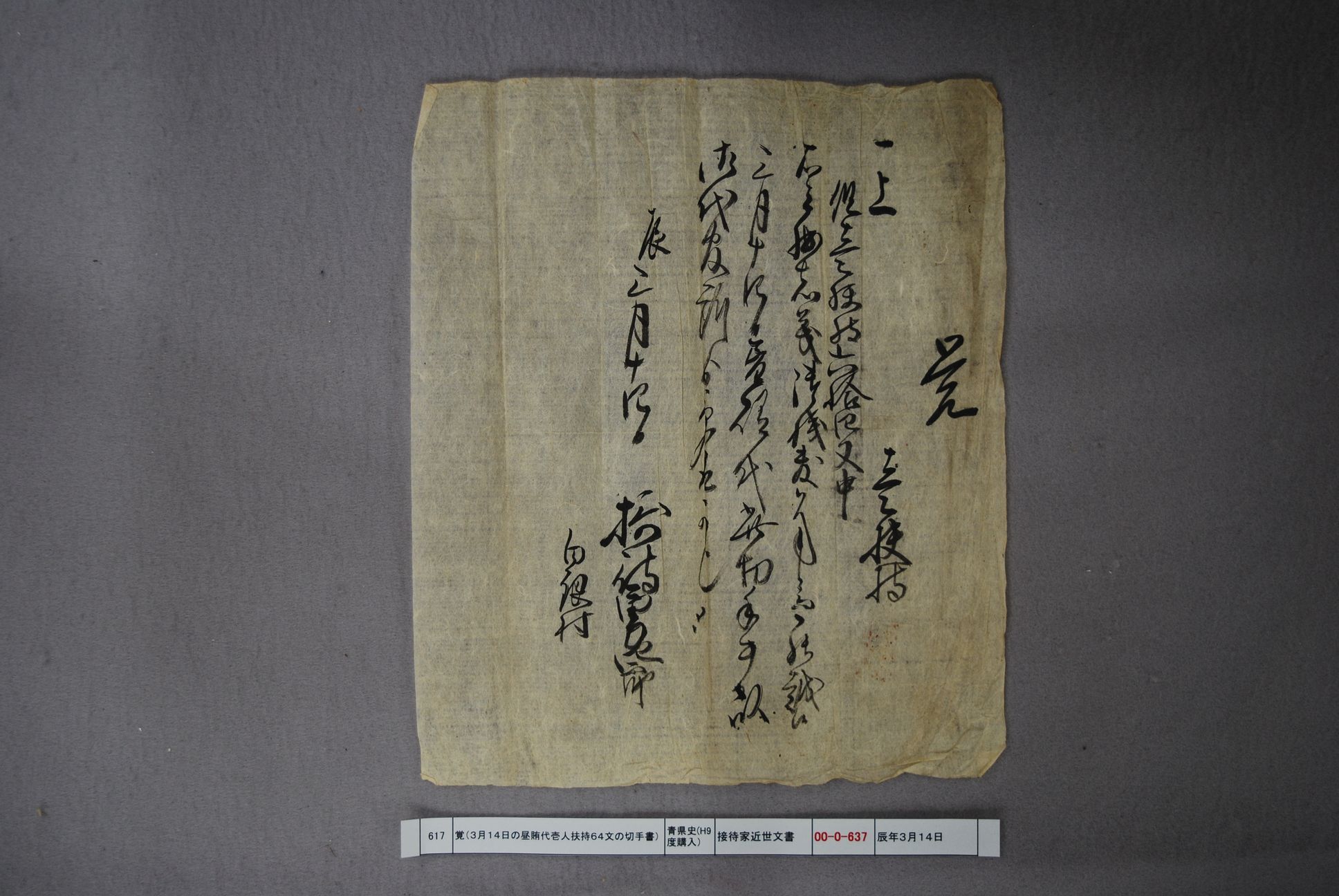 覚(昼賄代壱人扶持代官より受取切手)