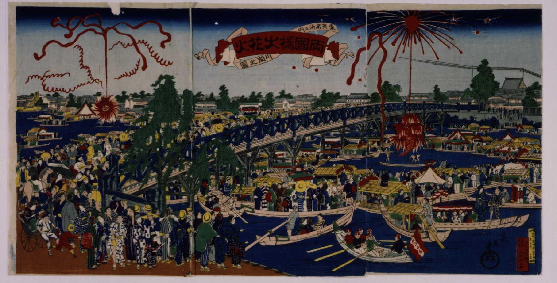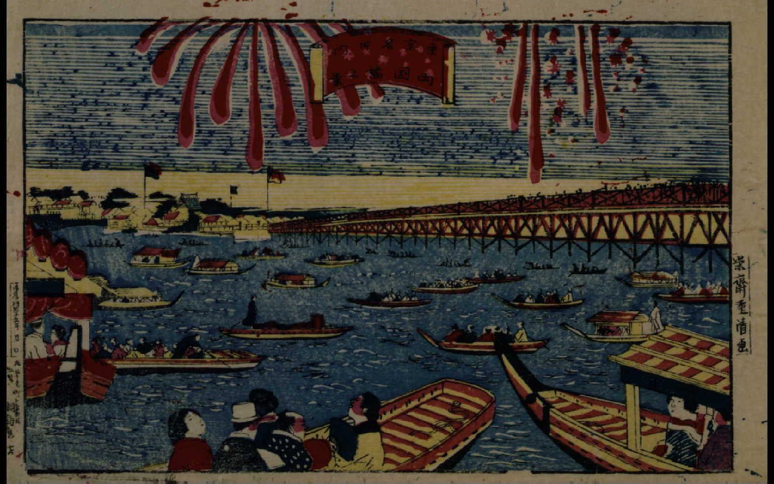 東亰名所之内川開之図 両国橋大花火