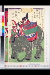「明治九年アジヤシウ天竺渡リ大象三年七ヶ月浅艸開帳ニテ興行」