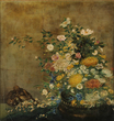 銅器の花と布袋の置物