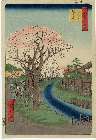 Blossoms on the Tama River Embankment (Tamagawa-zutsumi no hana), from the series "One Hundred Famous Views of Edo (Meisho Edo hyakkei)"