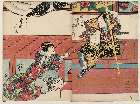 Jitsukawa Ensaburō as Hosokawa Kizunokami (right panel); Arashi Kichisaburō III as Harubashi Shüya (left panel)
