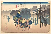 Nihon Bridge: Morning Scene (Nihonbashi, asa no kei), from the series "Fifty-three Stations of the Tokaido Road (Tokaido gojusan tsugi no uchi)," also known as the Hoeido Tokaido