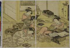 Women viewing miniature landscape, from the series "Furyu moro hanami uwari"
