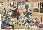 「仮名手本忠臣蔵」 「十二段目」「別当善助 生島寛右衛門」「鳥取逸郎 市川滝十郎」「用人恒次 嵐吉右衛門」「大星由良の助 実川額十郎」「堀部安兵へ 嵐雛助」「大星力弥 中むら駒之助」「小ノ寺十内 片岡小六郎」「岡の近右衛門 片岡市蔵」「不破数右衛門 実川菊蔵」「早野和助 実川八百蔵」