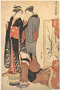 Young Samurai and Female Attendants Practicing Archery, Half of a Diptych