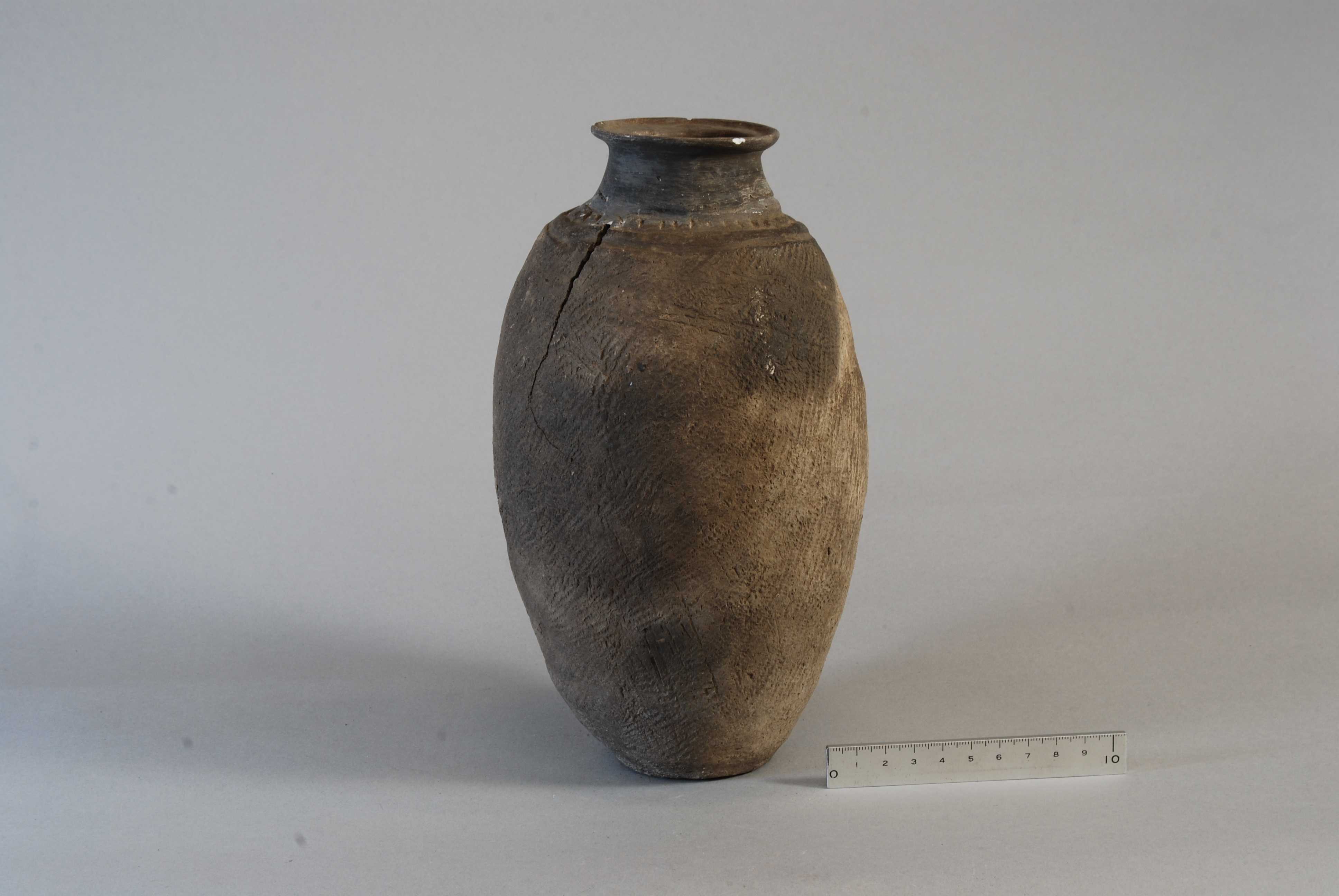 Ovoid jar with ornamental borders with roundels, cranes and dots