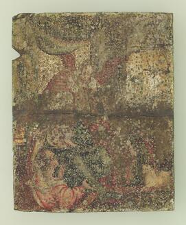 Poppetje voorstellende een drager. Geheel in het zwart gekleed, met over zijn rechterschouder twee...