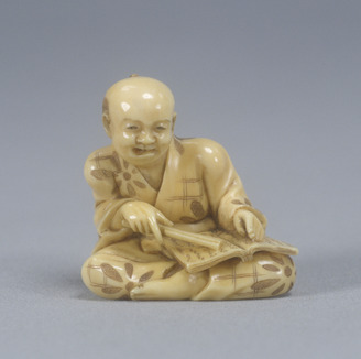 Netsuke [dancing farmer with clam basket]