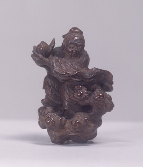 童負仙人木彫彩色根付