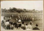 Brigadier W H Cunningham, CBE DSO VD, Officer Commanding the forces in Fiji, taking the salute during the An...