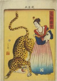 歌川芳盛画 「鳥獣図會」豹と阿蘭陀婦人