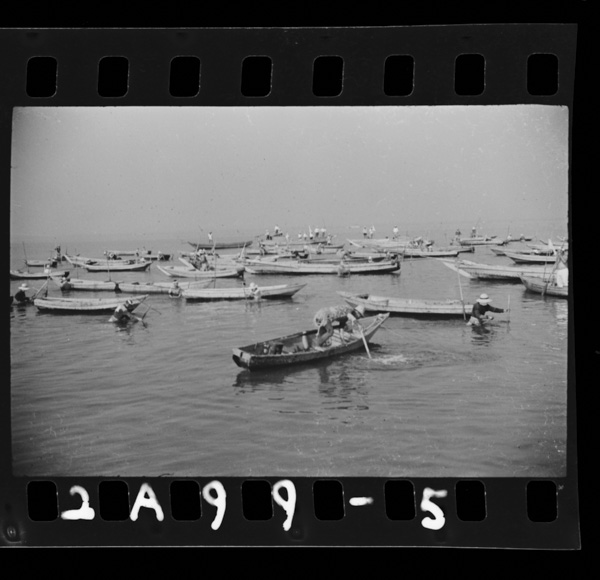 阿部浦の海女.海女舟に乗って今日も沖へ行く