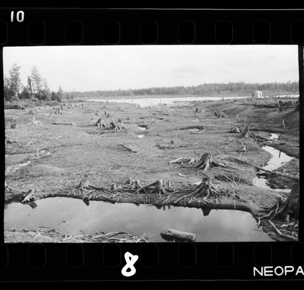 渇水期には岸辺に多くの切株があらわれる