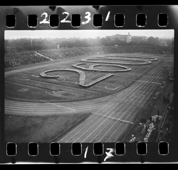 昭和一五年一〇月二七日、松田正志撮影。第一一回明治神宮国民体育大会開会式「2600」の人文字。